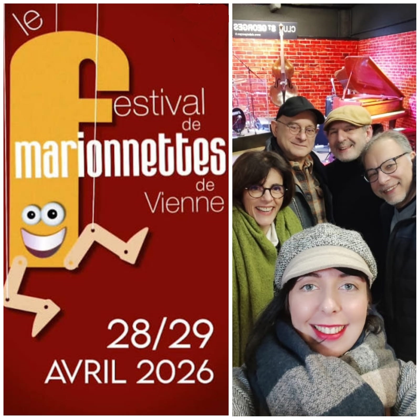 Dans le cadre du tout nouveau Festival de marionnettes de Vienne, un Concert JAZZ animé aura lieu au Club St Georges, le 29 avril, avec la troupe du Crazy Comics Puppets et les musiciens du Club St Georges.