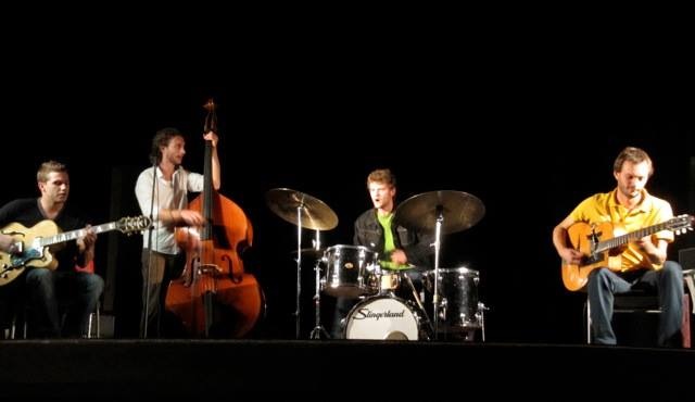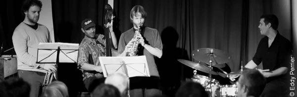 "Giorgios Klountos- Chrysidis, jeune batteur tout en finesse et solidité (ah ! les rappels à la Art Blakey !) avait réuni un sextet que nous avions déjà entendu au Hot, avec Vincent Périer au saxophone ténor, Bastien Brison au piano, Thomas Belin à la contrebasse, Julien Bertrand à la trompette, et Sébastien Joulie à la guitare.